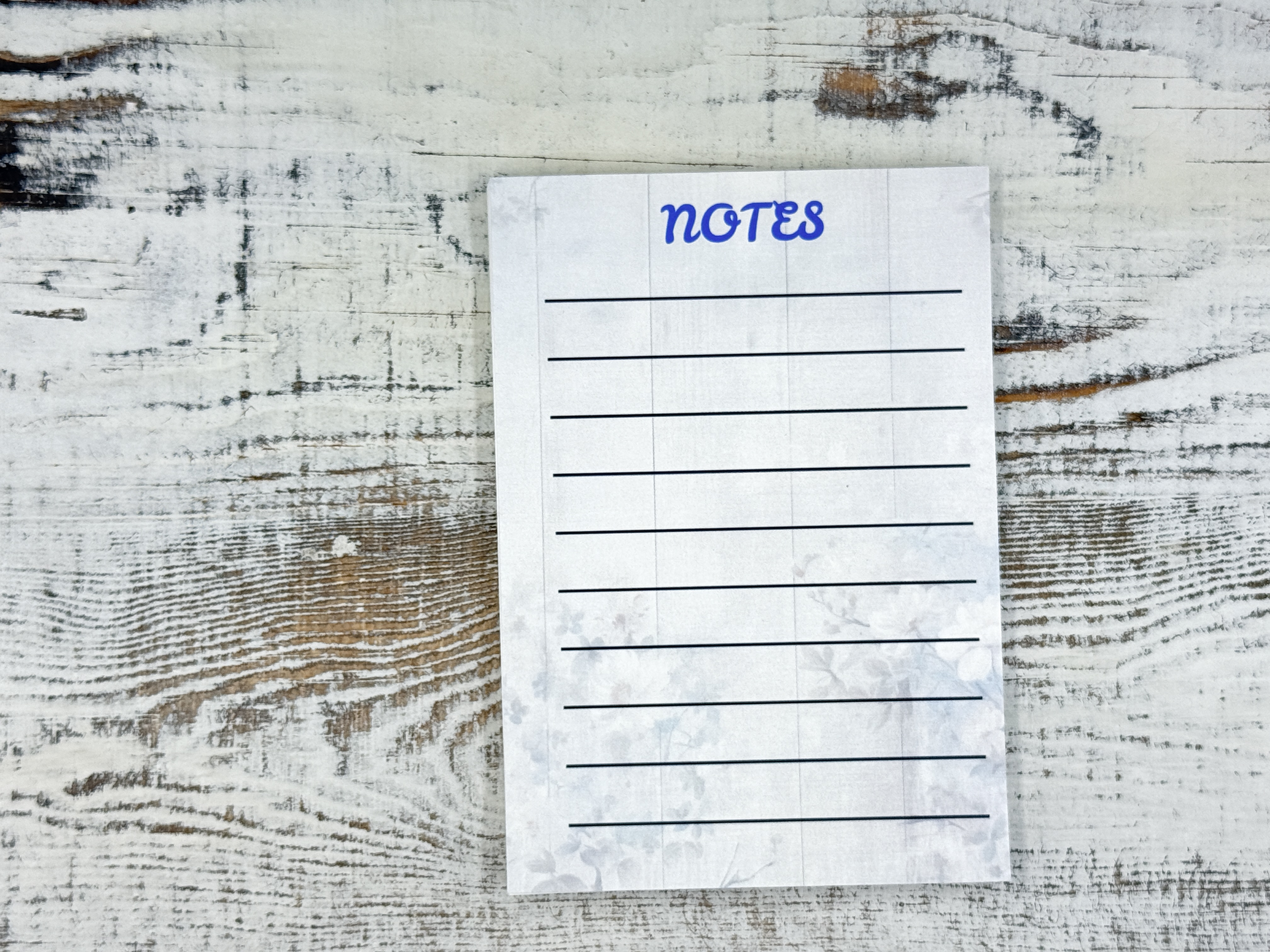 Bring a touch of rustic charm to your everyday notes with this 3.5 x 5 inch unlined floral notepad. Featuring soft florals set against a distressed wood background, this design has a warm farmhouse feel that never goes out of style.